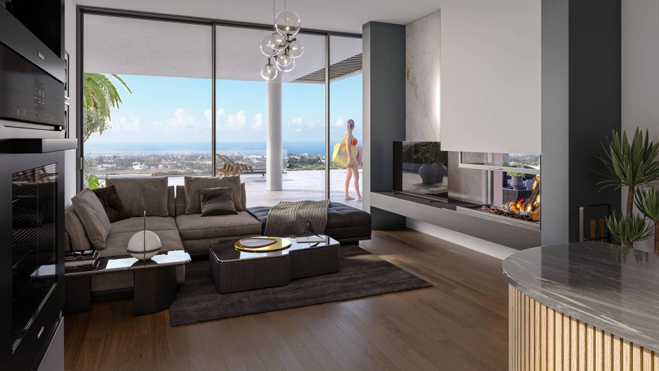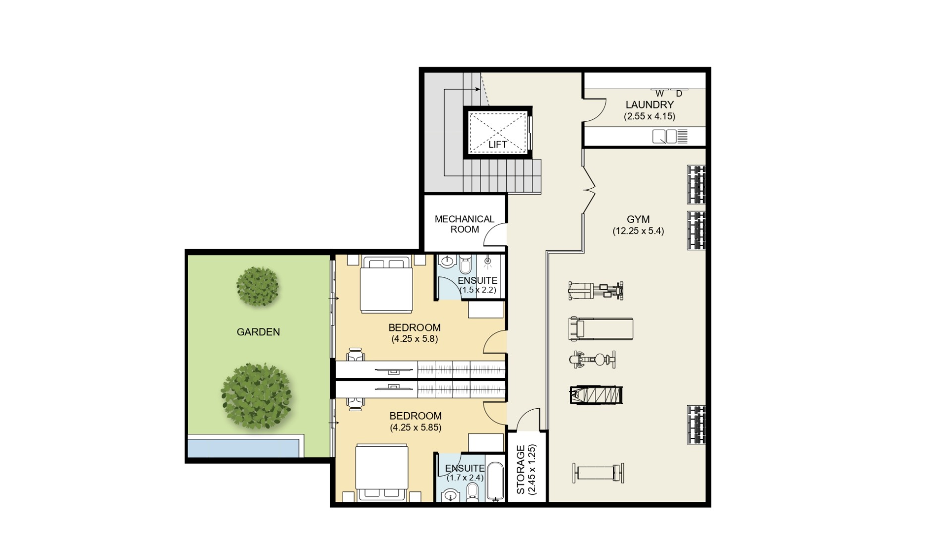 The villa features a spacious and secure external covered storage room. Additionally, water from the overflow of the infinity pool cascades down to create a captivating water feature to the garden on the Lower Level.