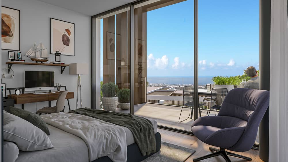 Villa 4, situated on the upper tier of the development, is accessible via an automated gate entrance leading to a private driveway capable of accommodating multiple vehicles. Access to the secure private underground garage is provided through an electric garage door.