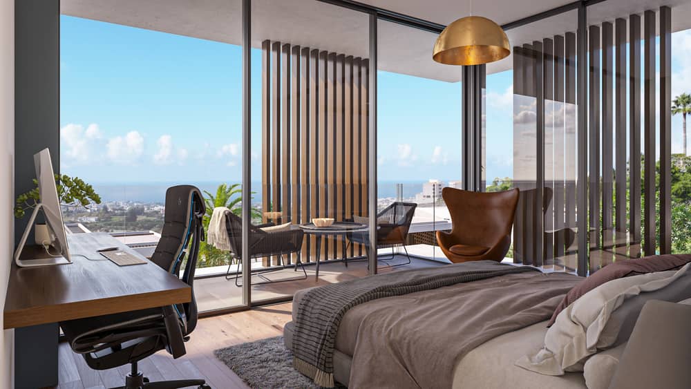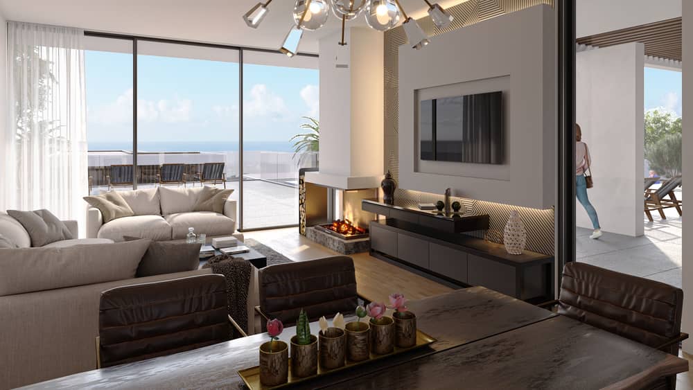 Download PlansVilla 6, situated on the upper tier of the development, is accessible via an automated gate entrance leading to a private driveway capable of accommodating multiple vehicles. Access to the secure private underground garage is provided through an electric garage door.