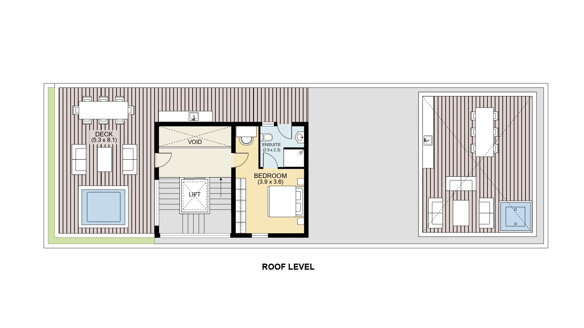 Villa 7, situated at the end of the development, is accessible via an automated gate entrance leading to a private driveway. It features a covered parking area capable of accommodating four vehicles. A separate annex building houses an open-plan kitchen, living, and dining area, along with two bedrooms and a bathroom.